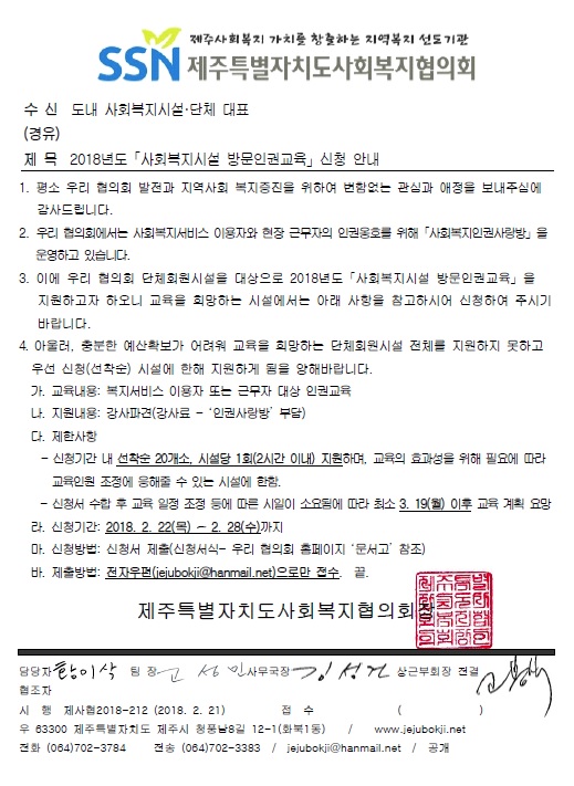 신청을 원하시는 경우 첨부된 신청서식 작성 후 기한 내 이메일(jejubokji@hanmail.net)로 제출바랍니다.