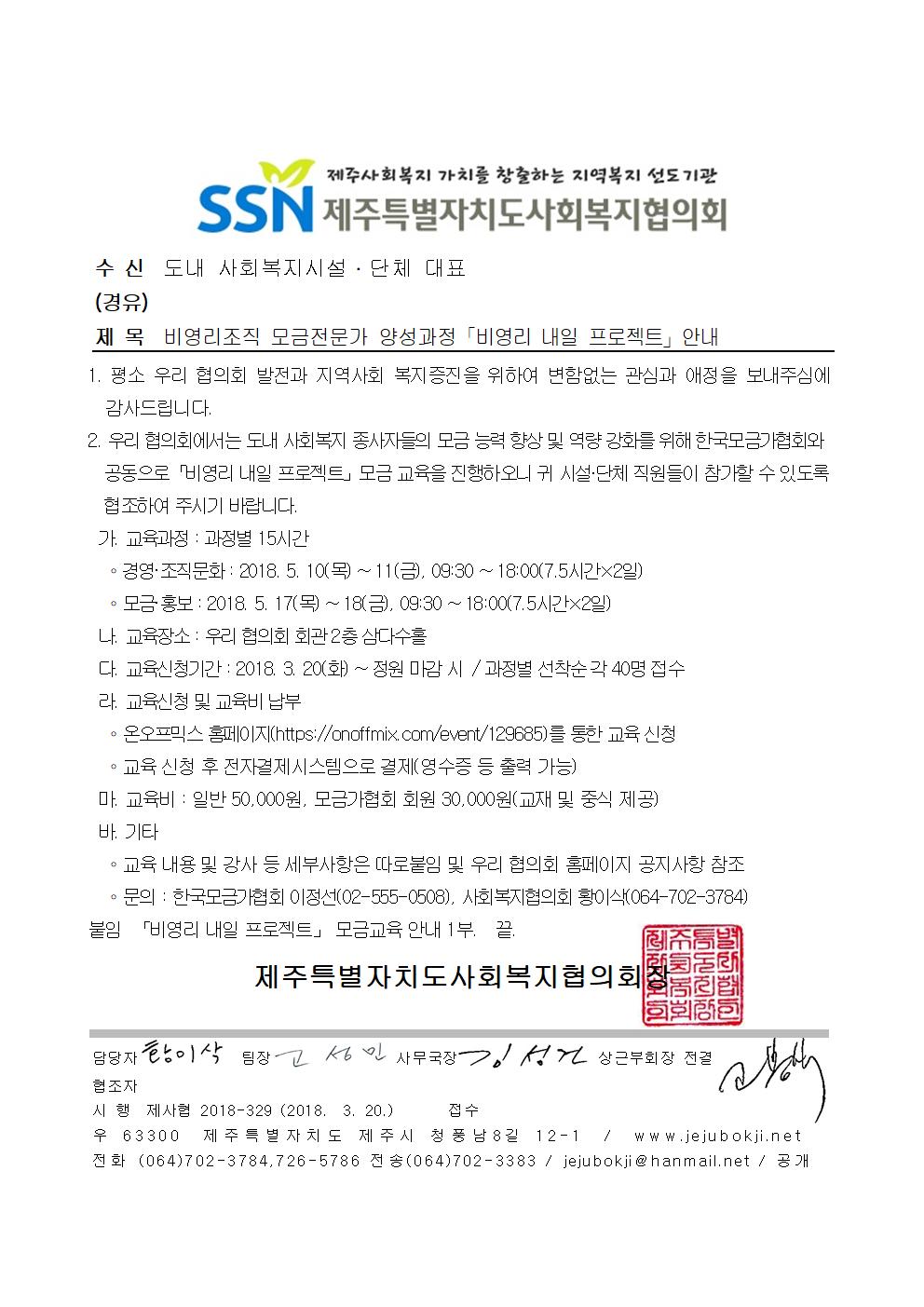 비영리조직 모금전문가 양성과정「비영리 내일 프로젝트」안내