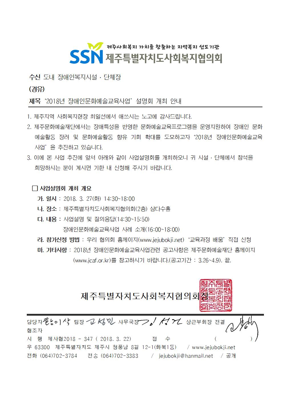 '2018년 장애인문화예술교육사업’설명회 개최 안내