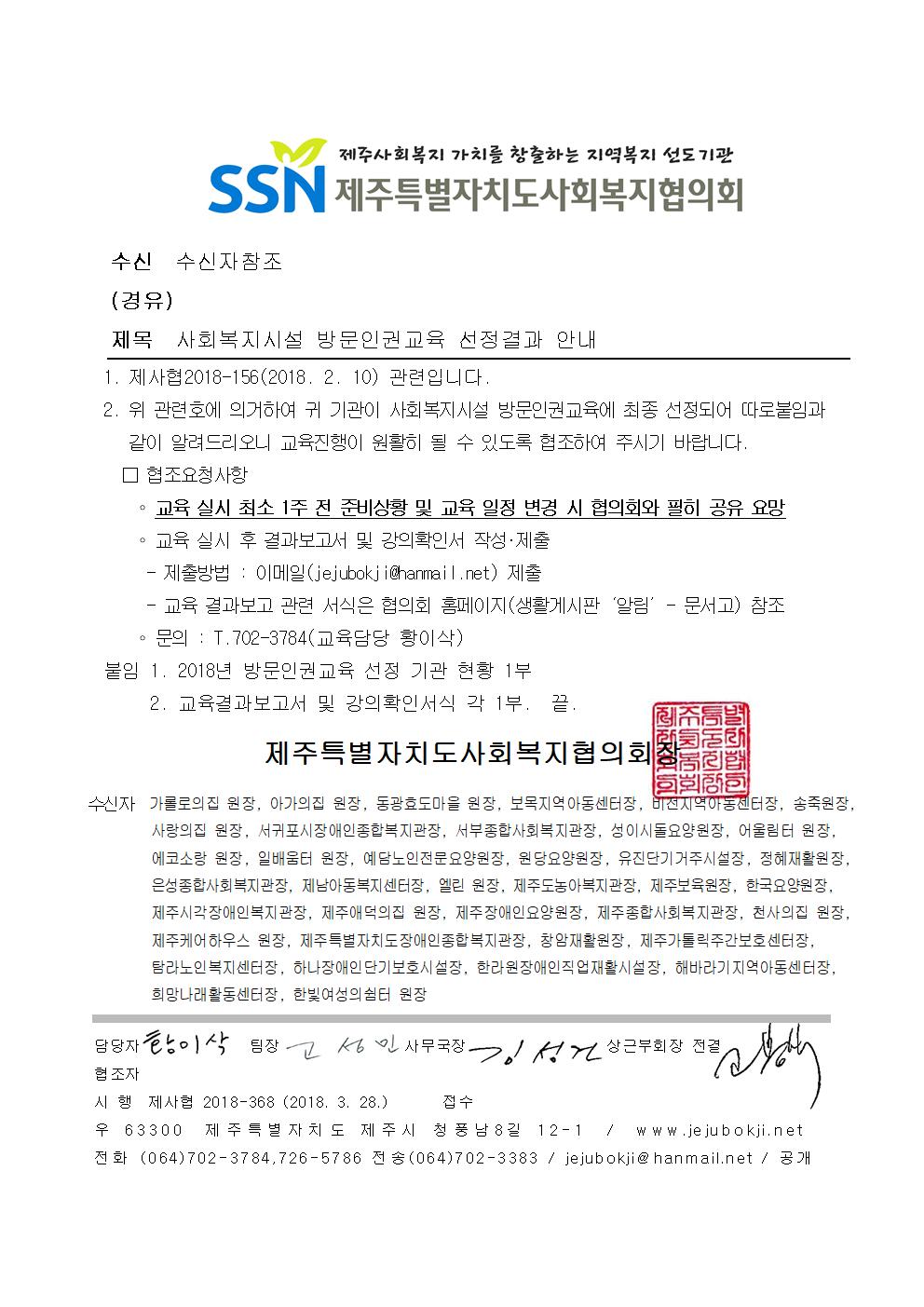 2018년도 사회복지시설 방문인권교육 선정결과 안내(결과보고 서식 첨부)