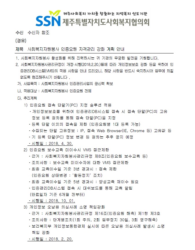 사회복지자원봉사 인증요원 자격관리 강화 계획