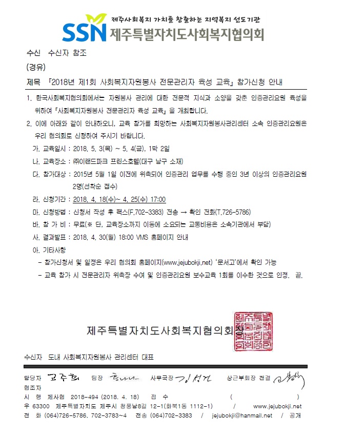 2018 제1회 사회복지자원봉사 전문관리자 육성교육 참가신청