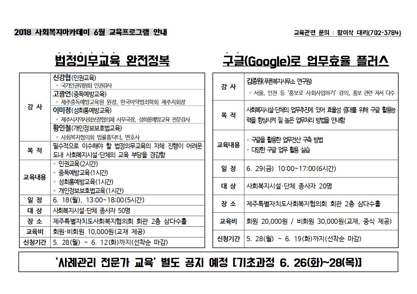 2018년도 사회복지아카데미 6월 교육프로그램 참가 안내