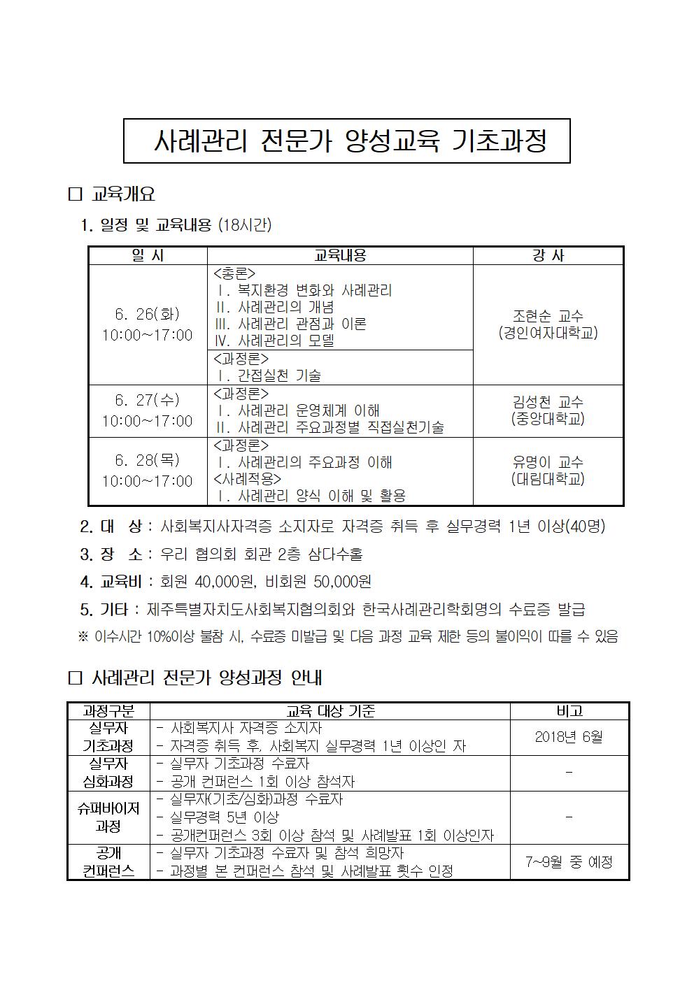 '사례관리 전문가 양성교육 기초과정' 신청안내
