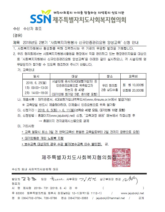 2분기 사회복지자원봉사 신규인증관리요원 양성교육