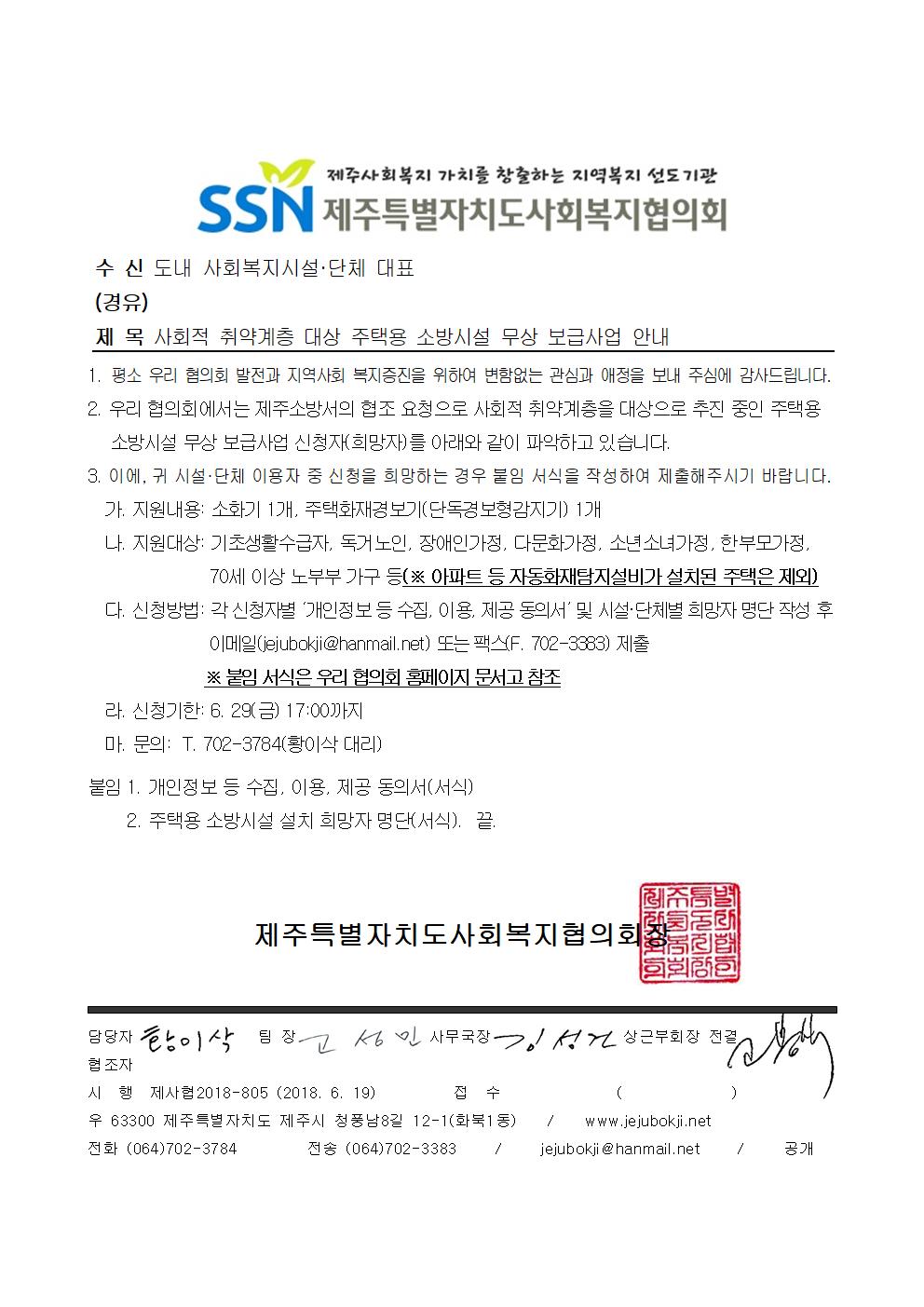 사회적 취약계층 대상 주택용 소방시설 무상 보급사업 안내