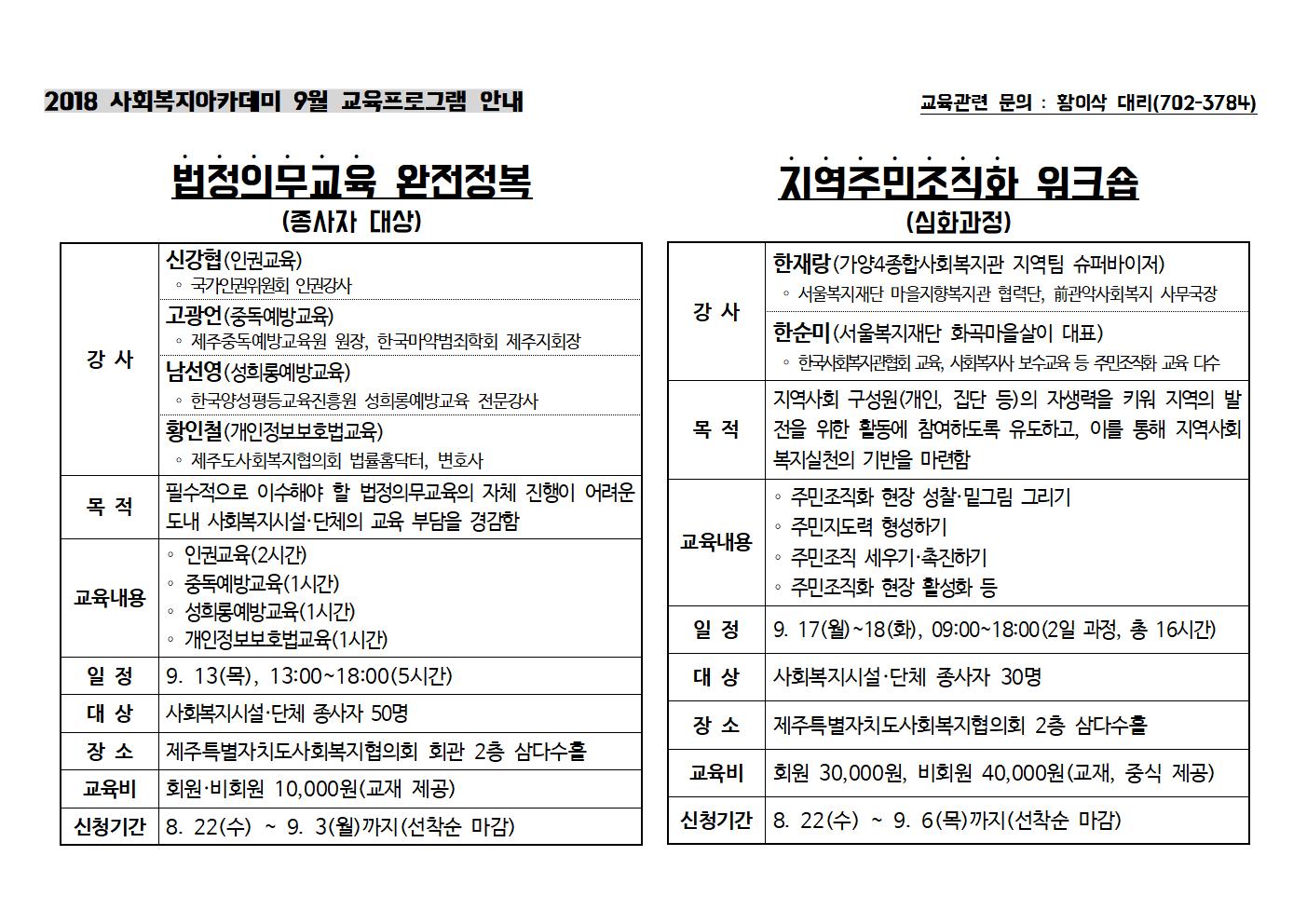 2018년도 사회복지아카데미 9월 교육프로그램 참가 안내
