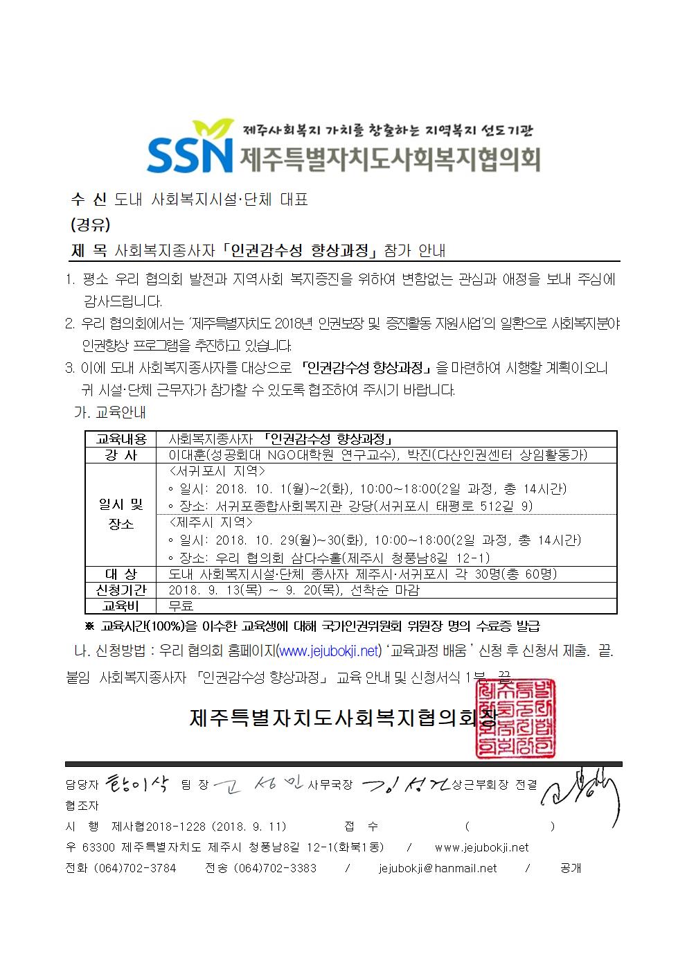 사회복지종사자 「인권감수성 향상과정」참가 안내