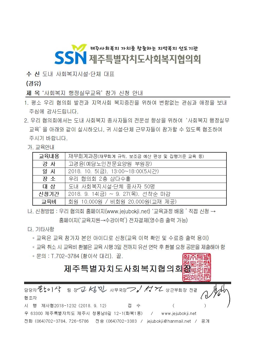 ‘사회복지 행정실무교육’ 참가 신청 안내