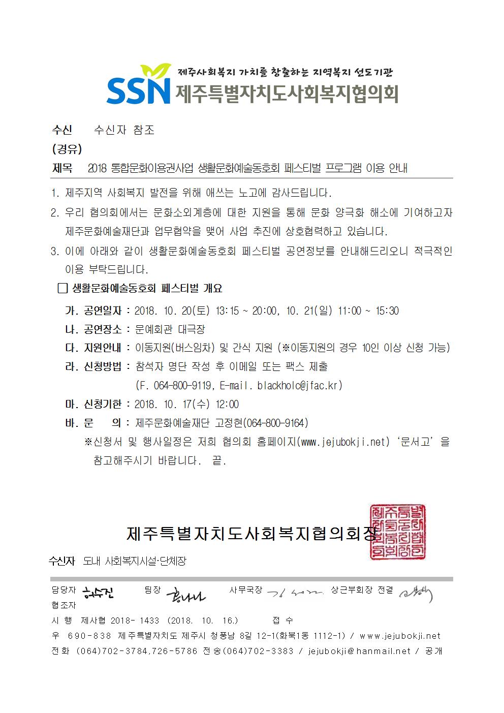 2018 통합문화이용권사업 생활문화예술동호회페스티벌 프로그램 이용 안내