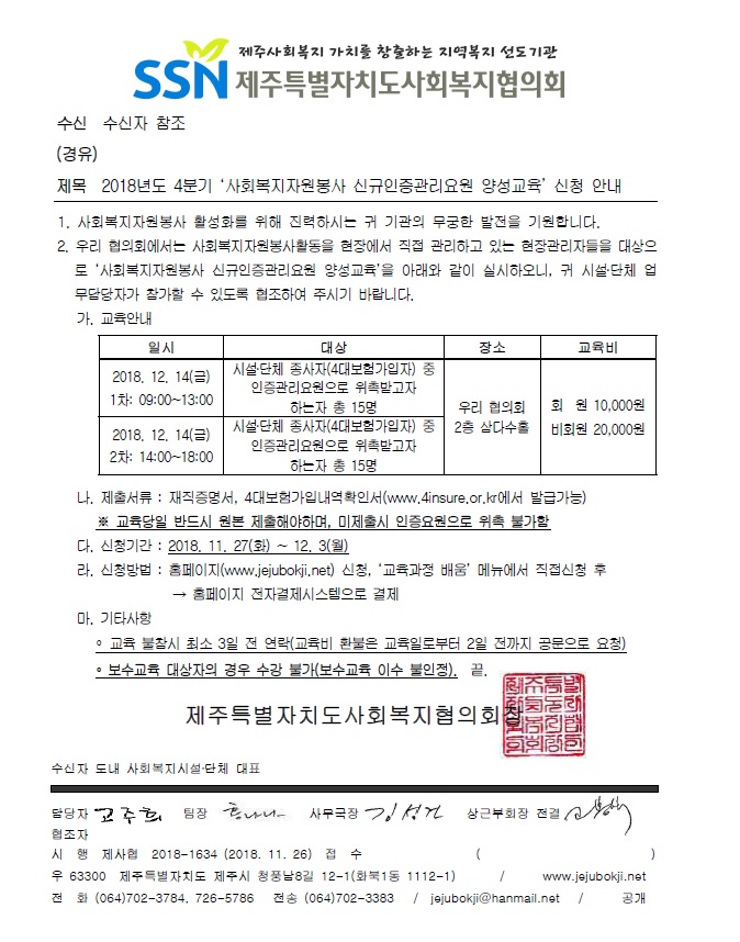 2018년 4분기 사회복지자원봉사 신규인증요원 양성교육