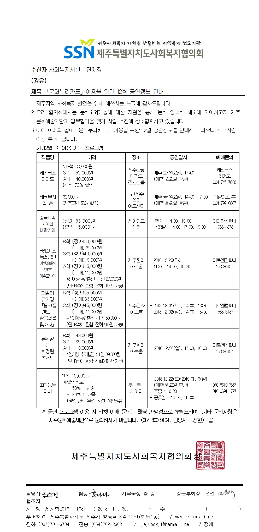 「문화누리카드」이용을 위한 12월 공연정보 안내