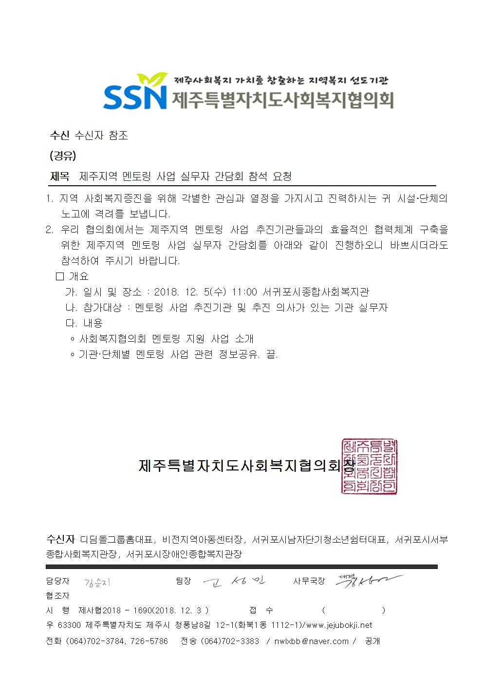 제주지역 멘토링 사업 2차 실무자 간담회 참석 요청