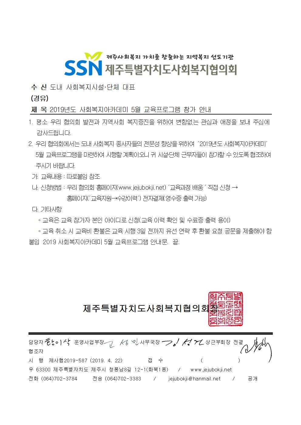 2019년도 사회복지아카데미 5월 교육프로그램 참가 안내