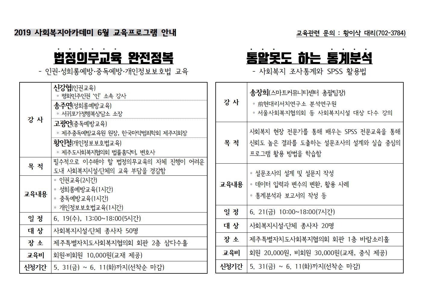 2019년도 사회복지아카데미 6월 교육프로그램 참가 안내