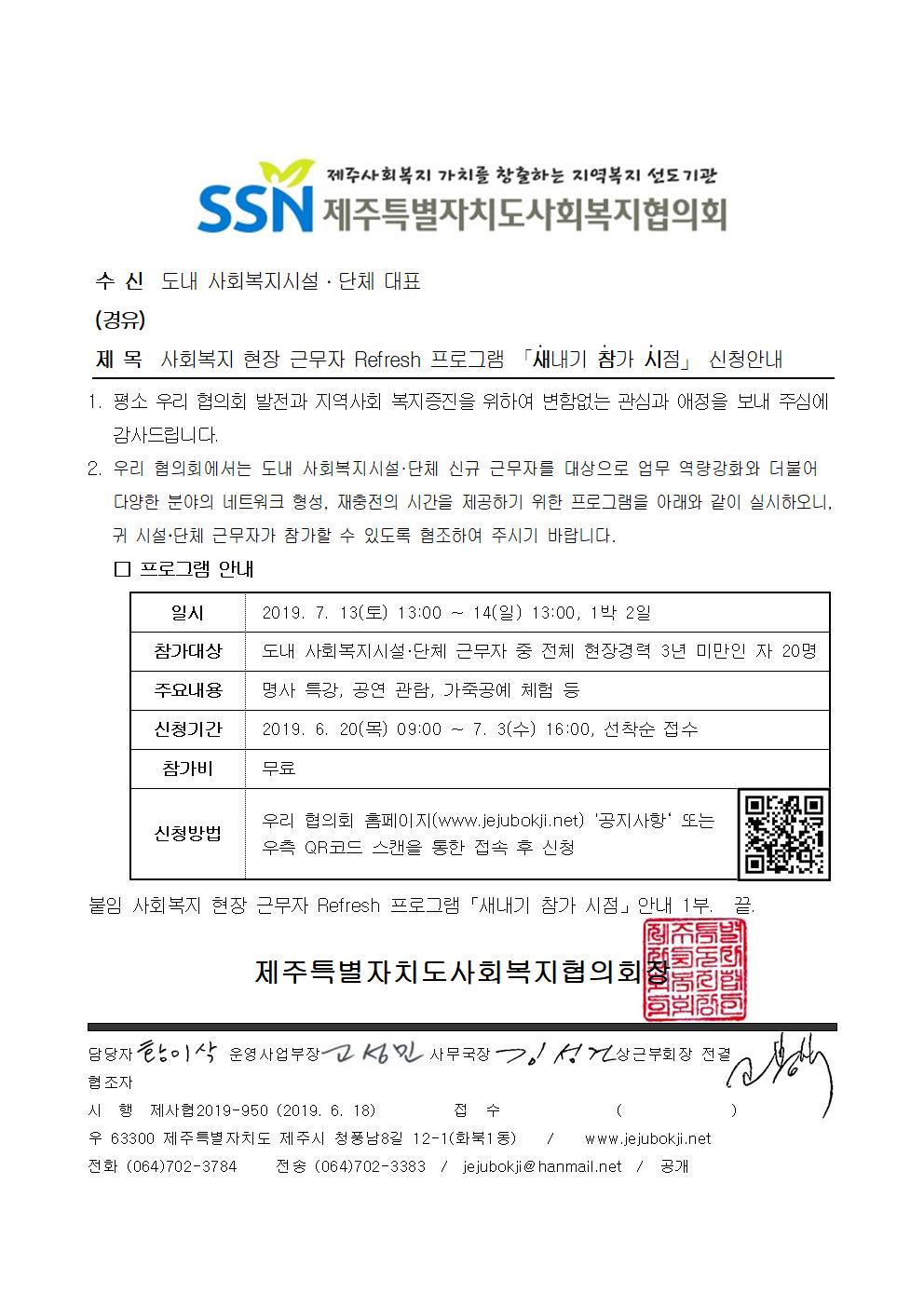 사회복지 현장 근무자 Refresh 프로그램 「새내기 참가 시점」 신청안내