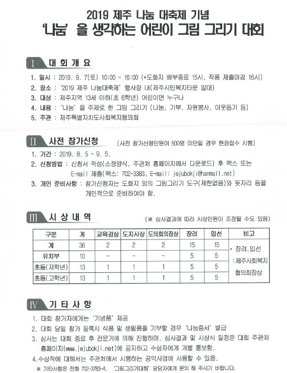 '제3회 나눔을 생각하는 어린이 그림그리기대회' 홍보 및 참가신청안내 협조요청