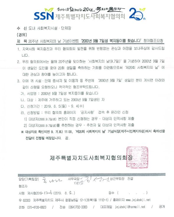 제20회 사회복지의 날 기념이벤트 "2000년 9월 7일생 복지둥이를 찾습니다"