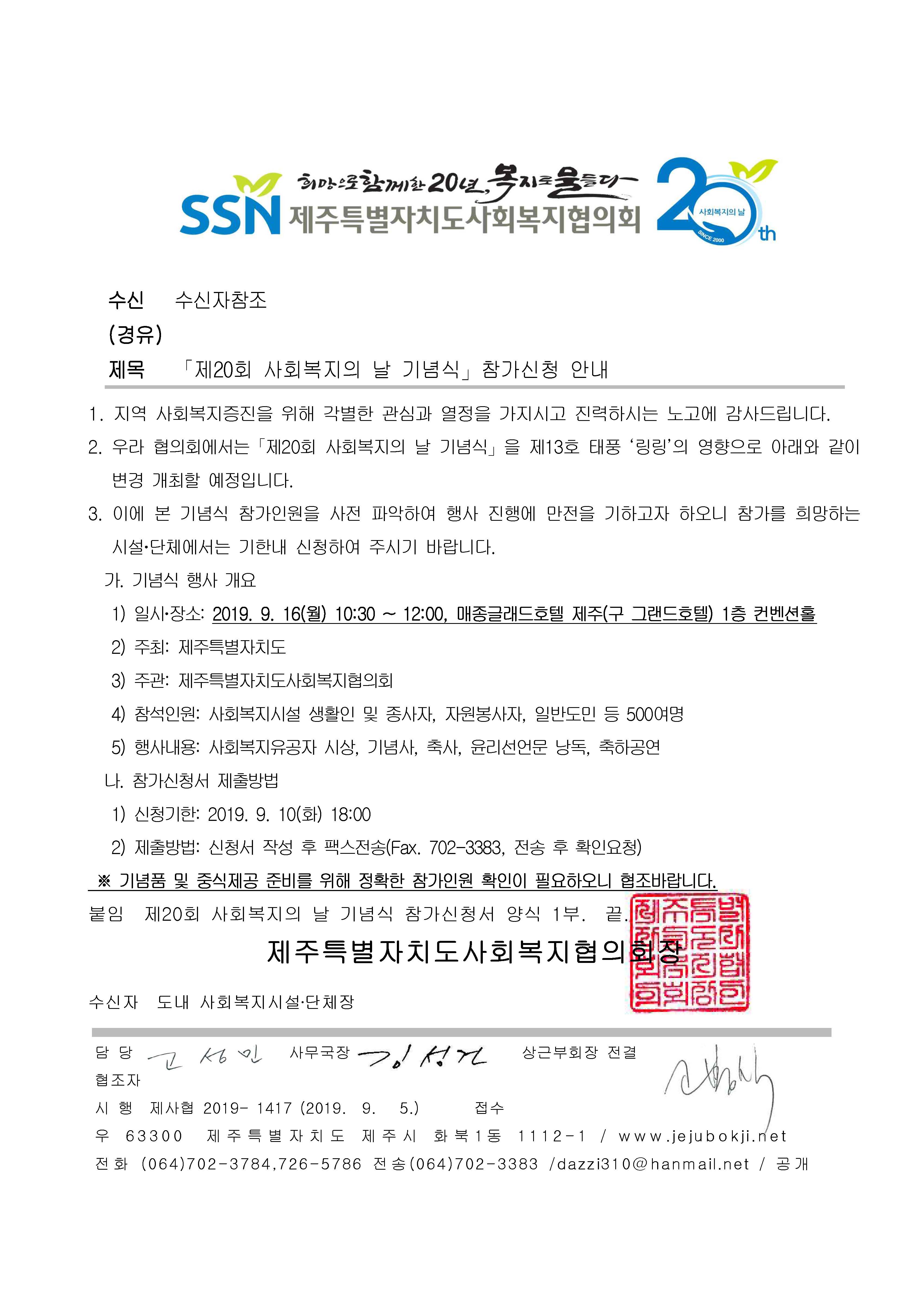 제20회 사회복지의 날 기념식 참석안내