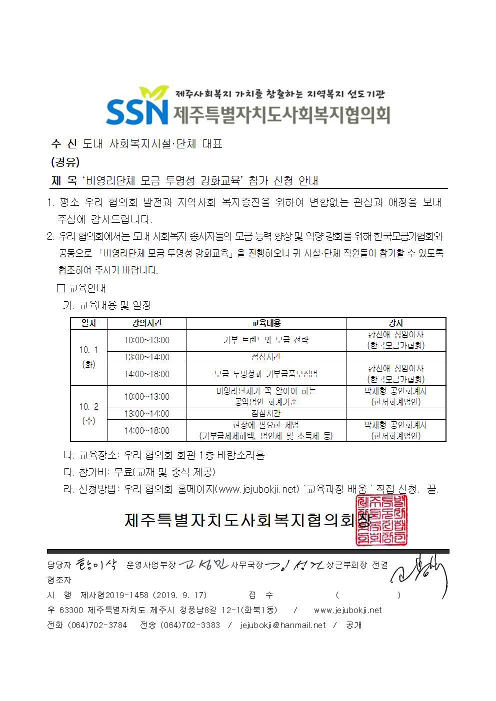 ‘비영리단체 모금 투명성 강화교육’ 참가 신청 안내