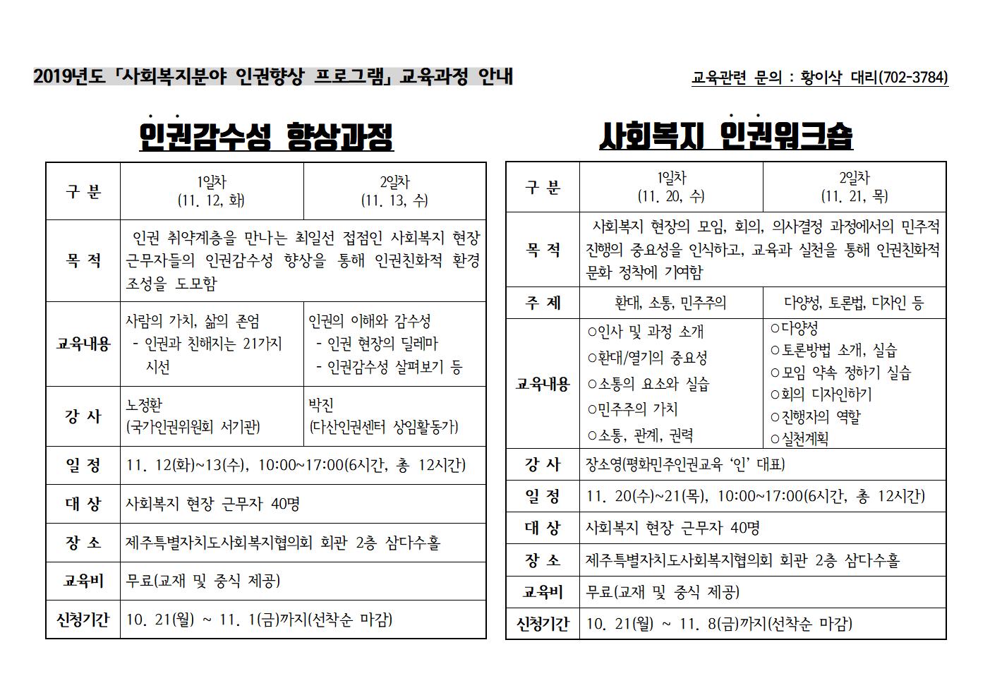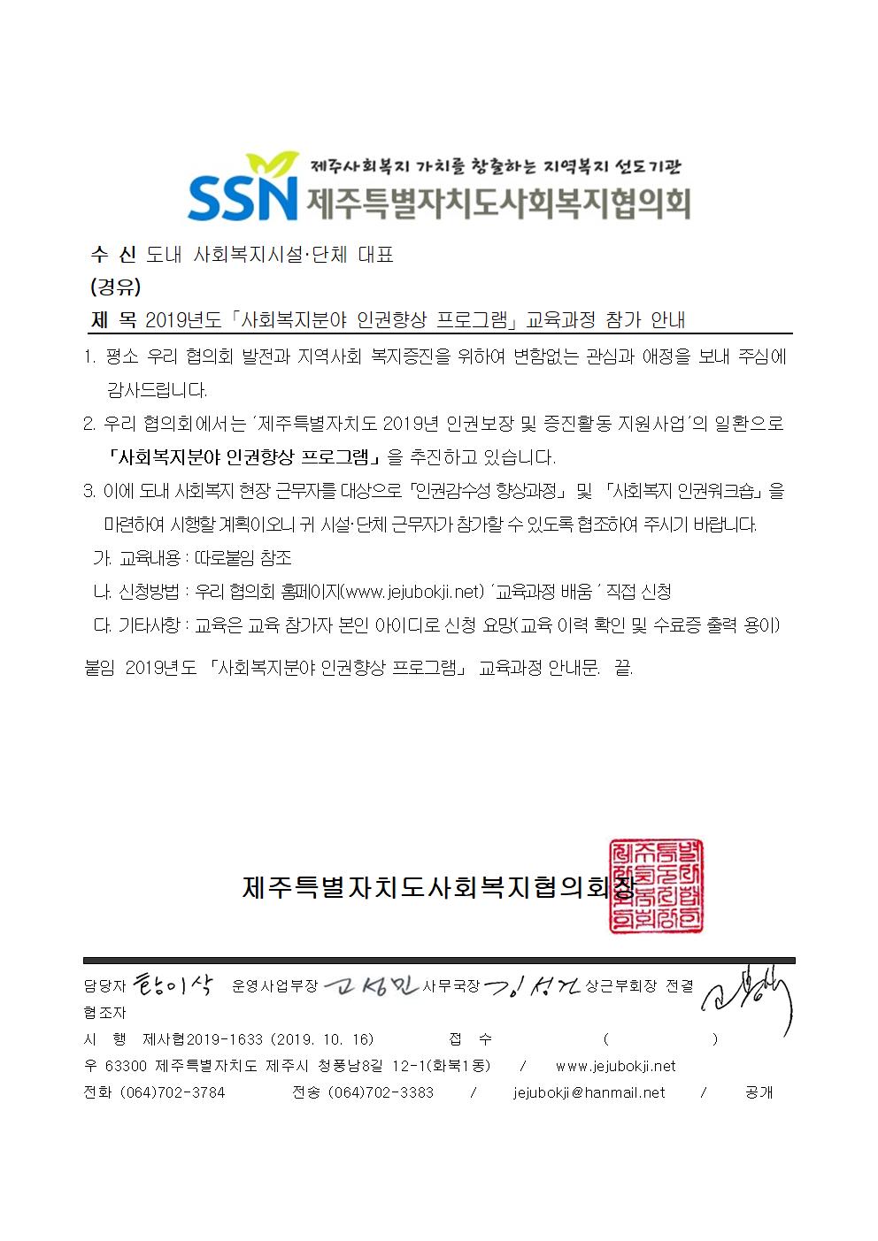 2019년도「사회복지분야 인권향상 프로그램」교육과정 참가 안내