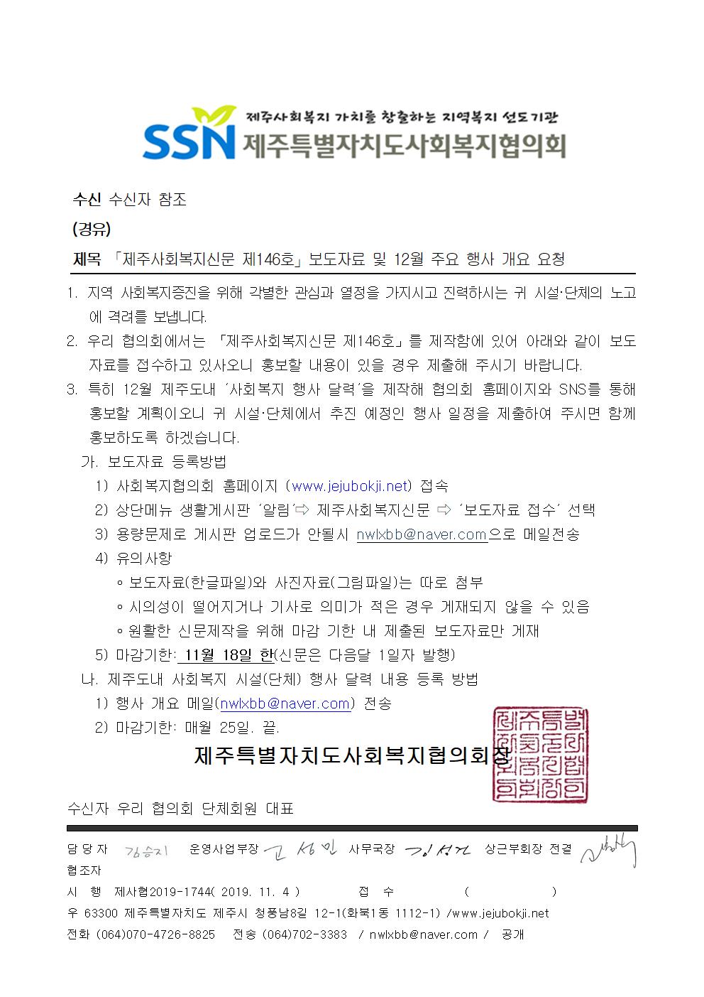 제주사회복지신문 제146호 보도자료 및 12월 주요 행사 개요