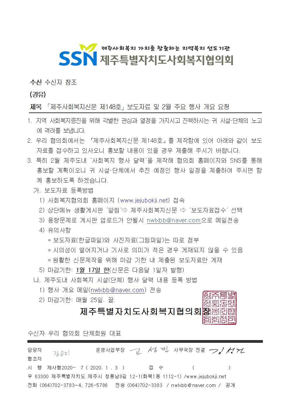제주사회복지신문 제 148호 보도자료 및 행사 개요 요청