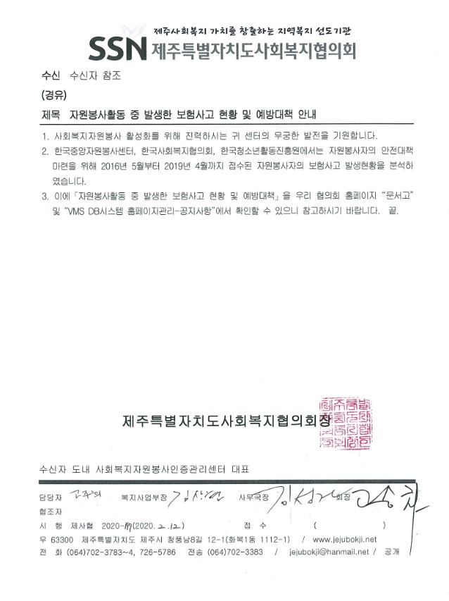 자원봉사활동 중 발생한 보험사고 현황 및 예방대책 안내