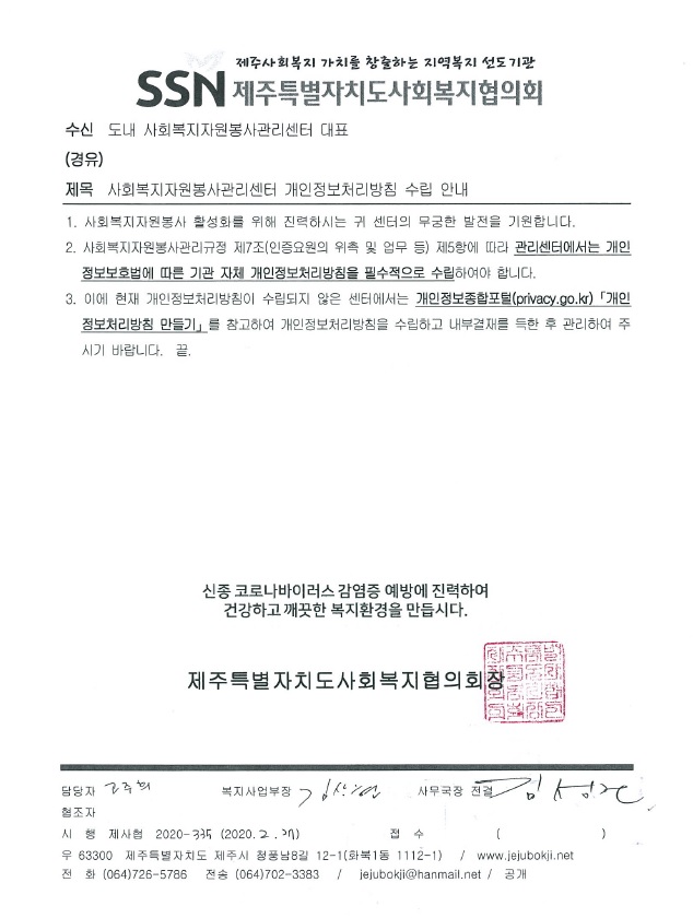 사회복지자원봉사관리센터 개인정보처리방침 수립 안내