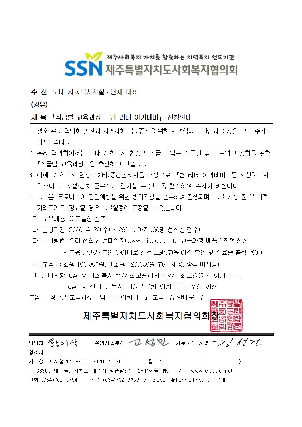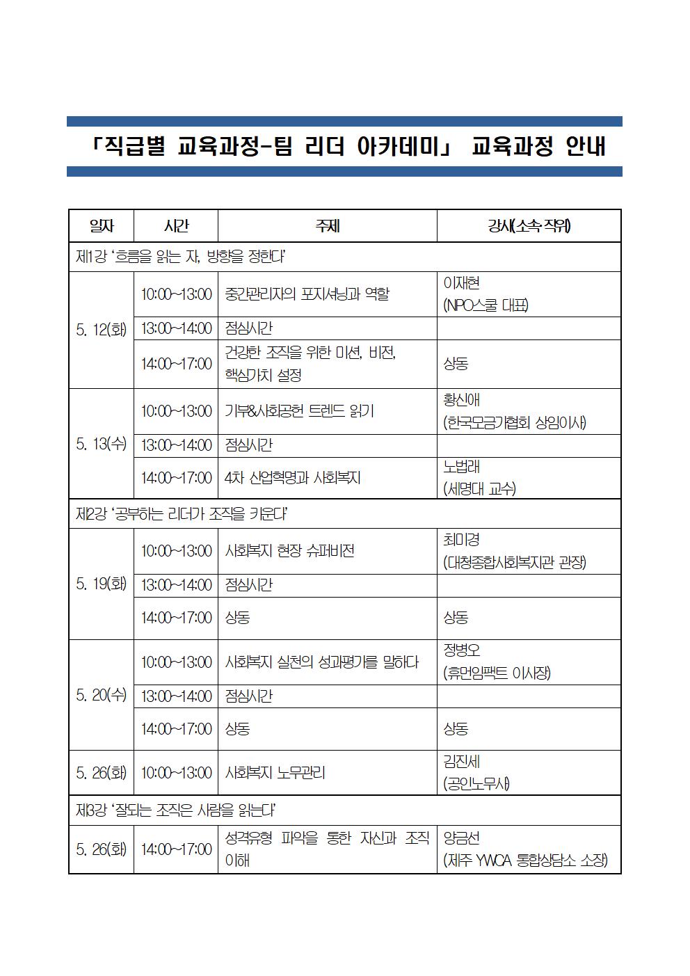 「직급별 교육과정 – 팀 리더 아카데미」 신청안내