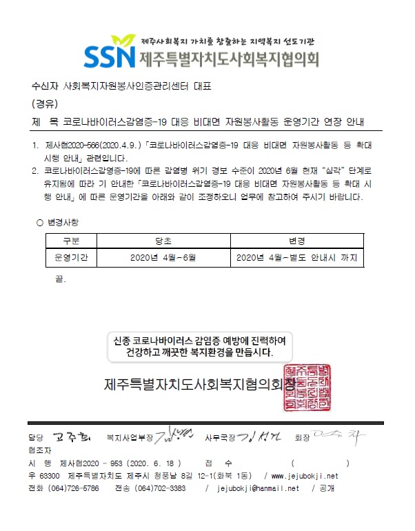 코로나바이러스감염증-19 대응 비대면 자원봉사활동 운영기간 연장 안내