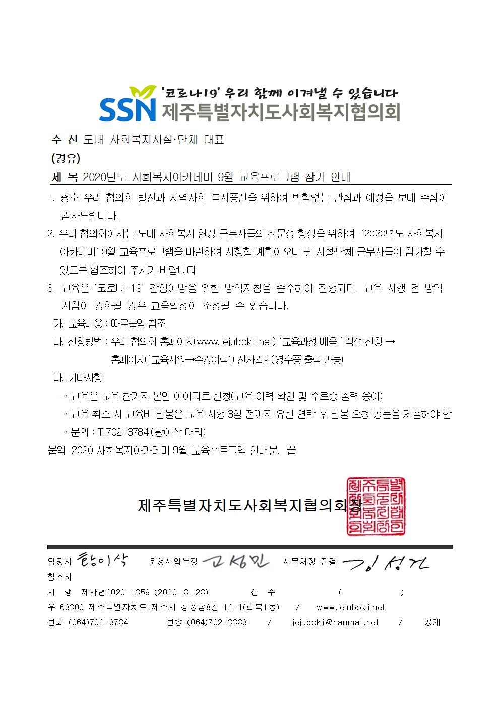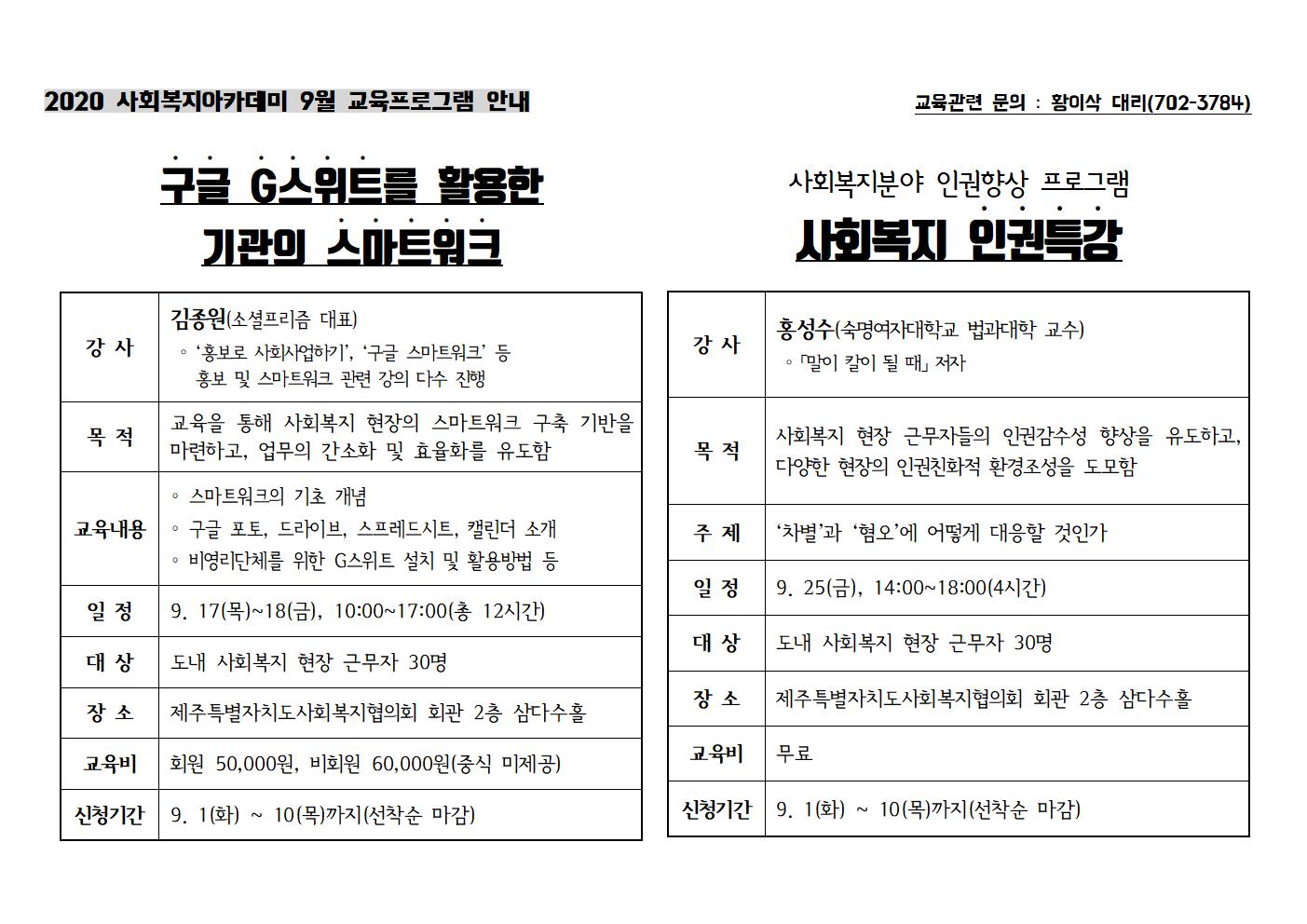 2020년도 사회복지아카데미 9월 교육프로그램 참가 안내