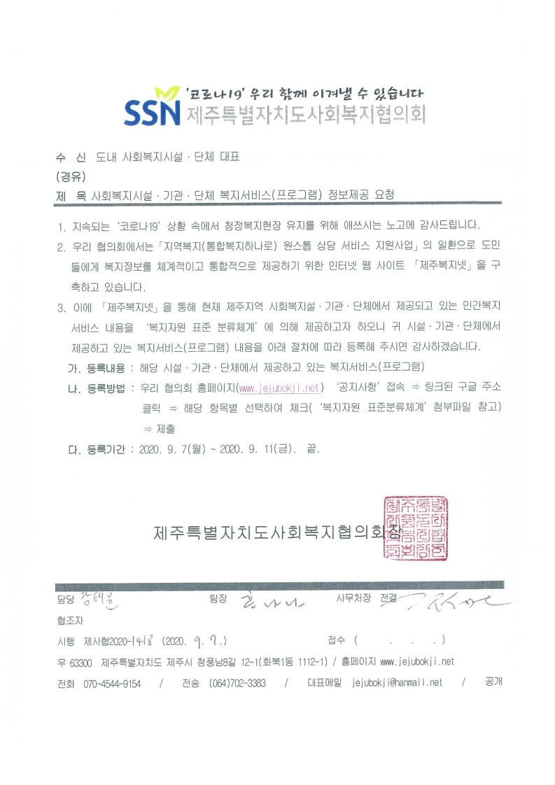사회복지시설·기관·단체 복지서비스(프로그램) 정보제공 요청