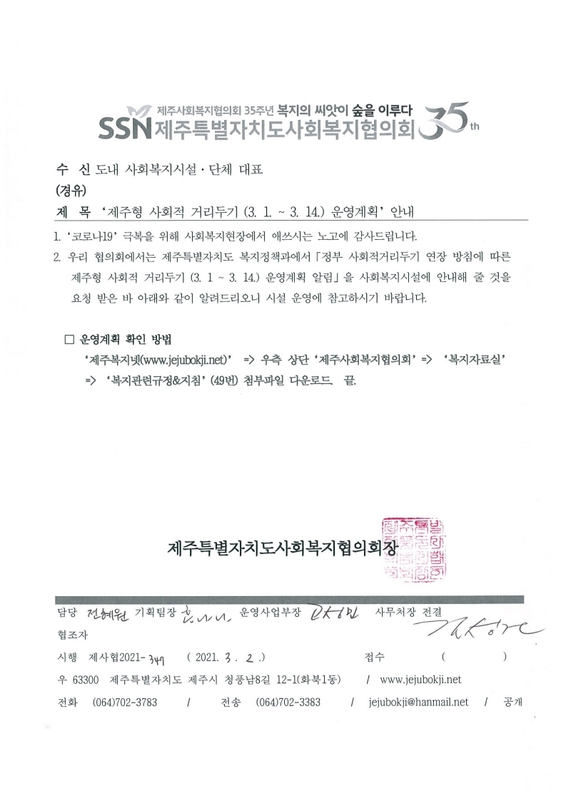 '제주형 사회적 거리두기(3.1.~3.14.) 운영계획'안내