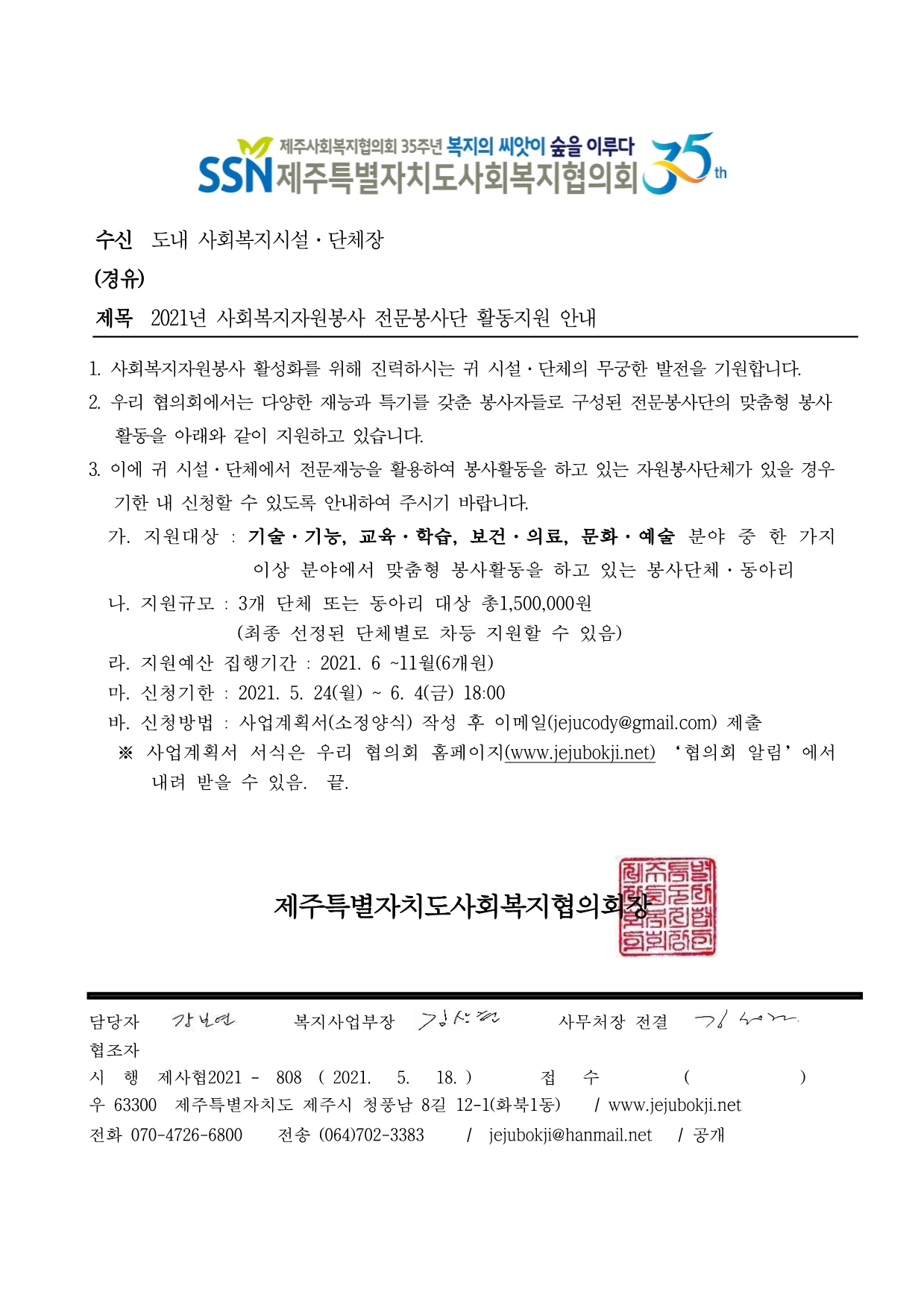 2021년 사회복지자원봉사 전문봉사단 활동지원 안내