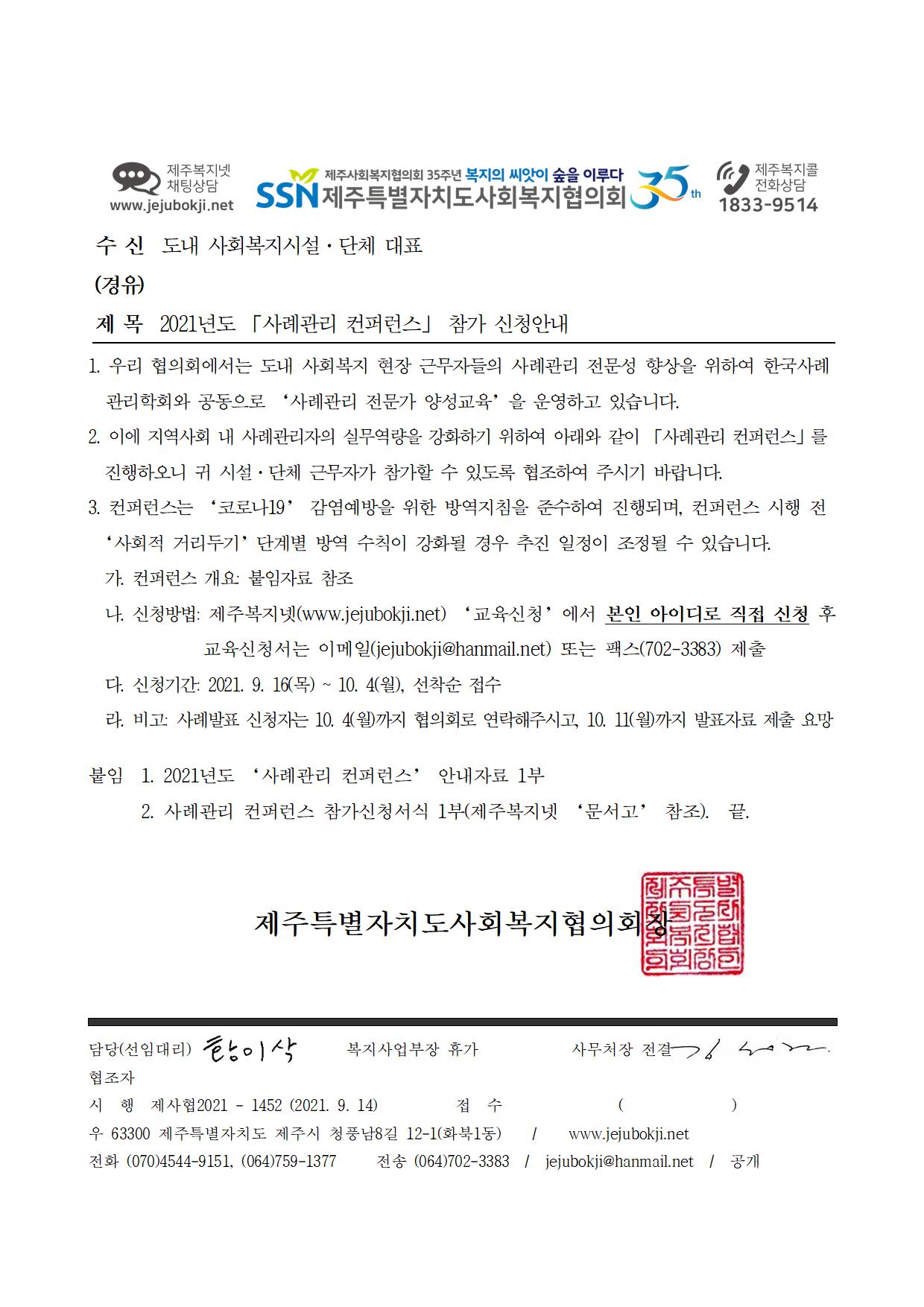 2021년도 「사례관리 컨퍼런스」 참가 신청안내(참가신청서식 첨부)