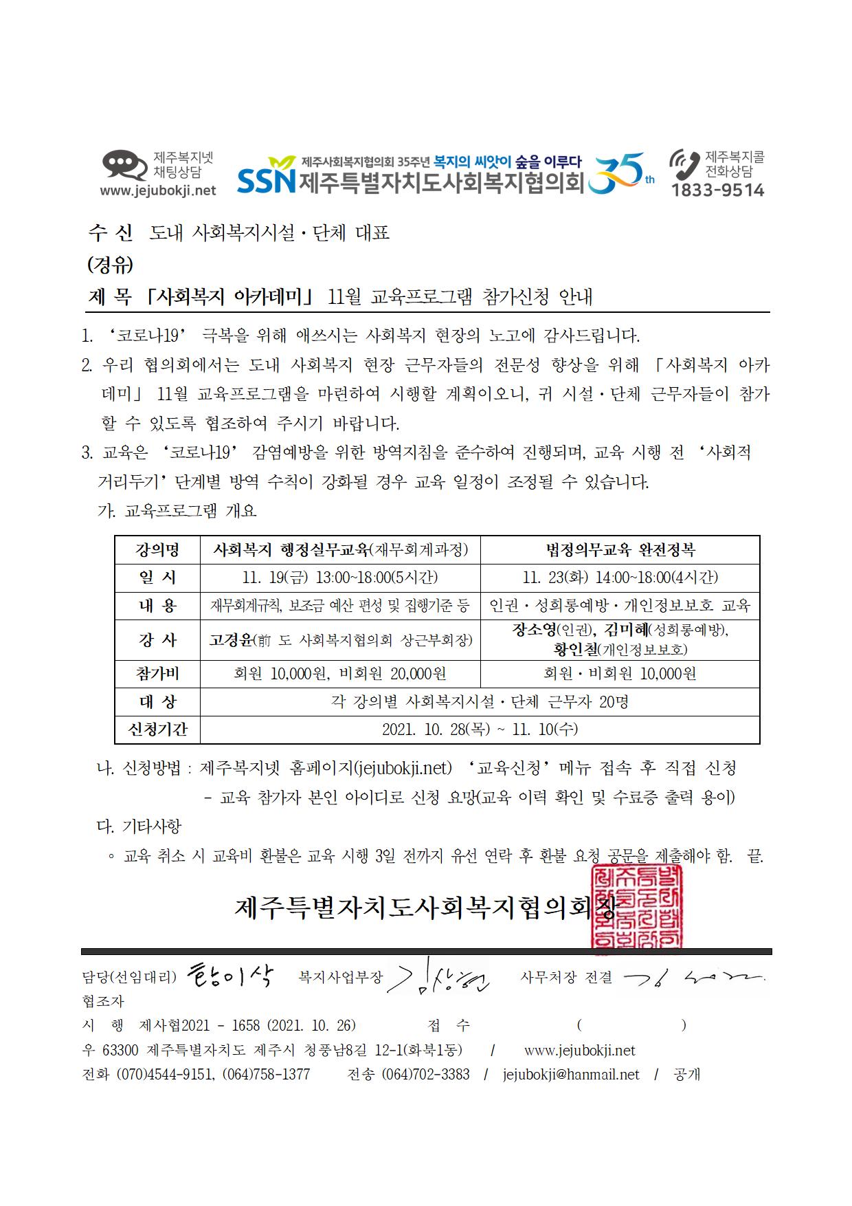 「사회복지 아카데미」 11월 교육프로그램 참가신청 안내