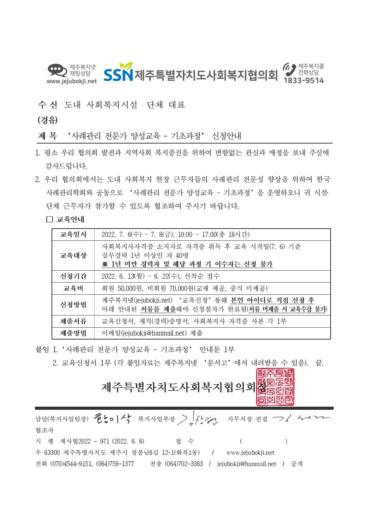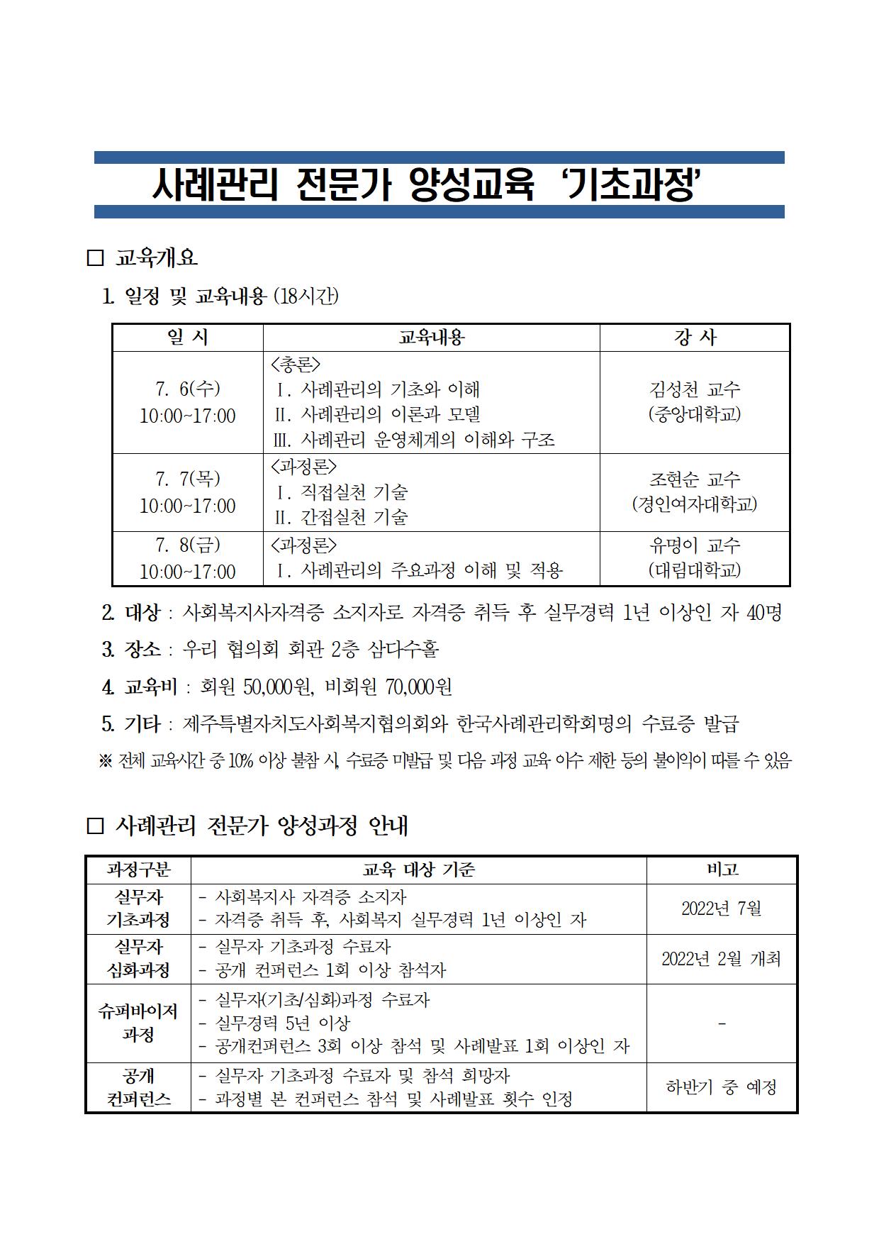 ‘사례관리 전문가 양성교육 - 기초과정’ 신청안내