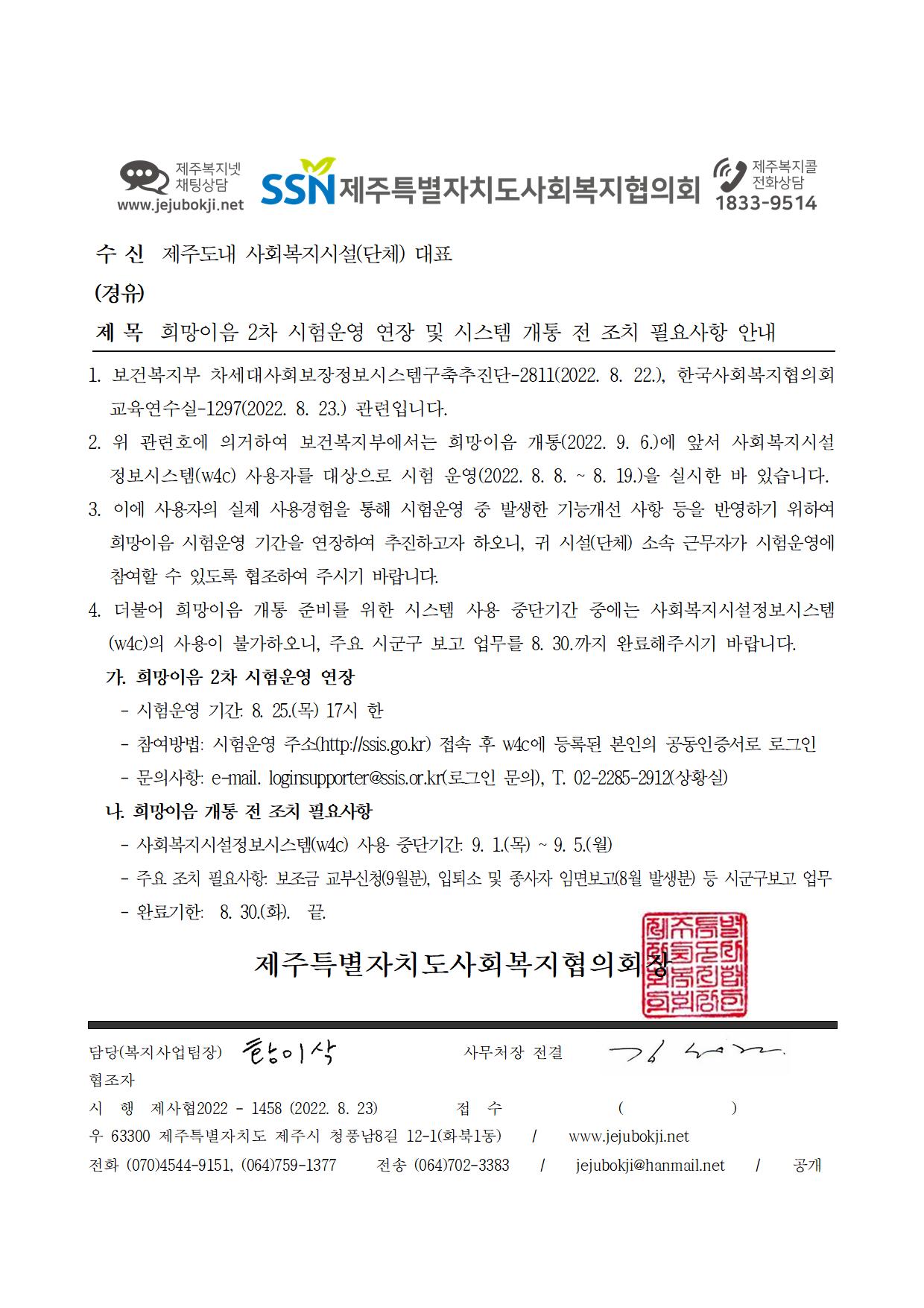 희망이음 2차 시험운영 연장 및 시스템 개통 전 조치 필요사항 안내