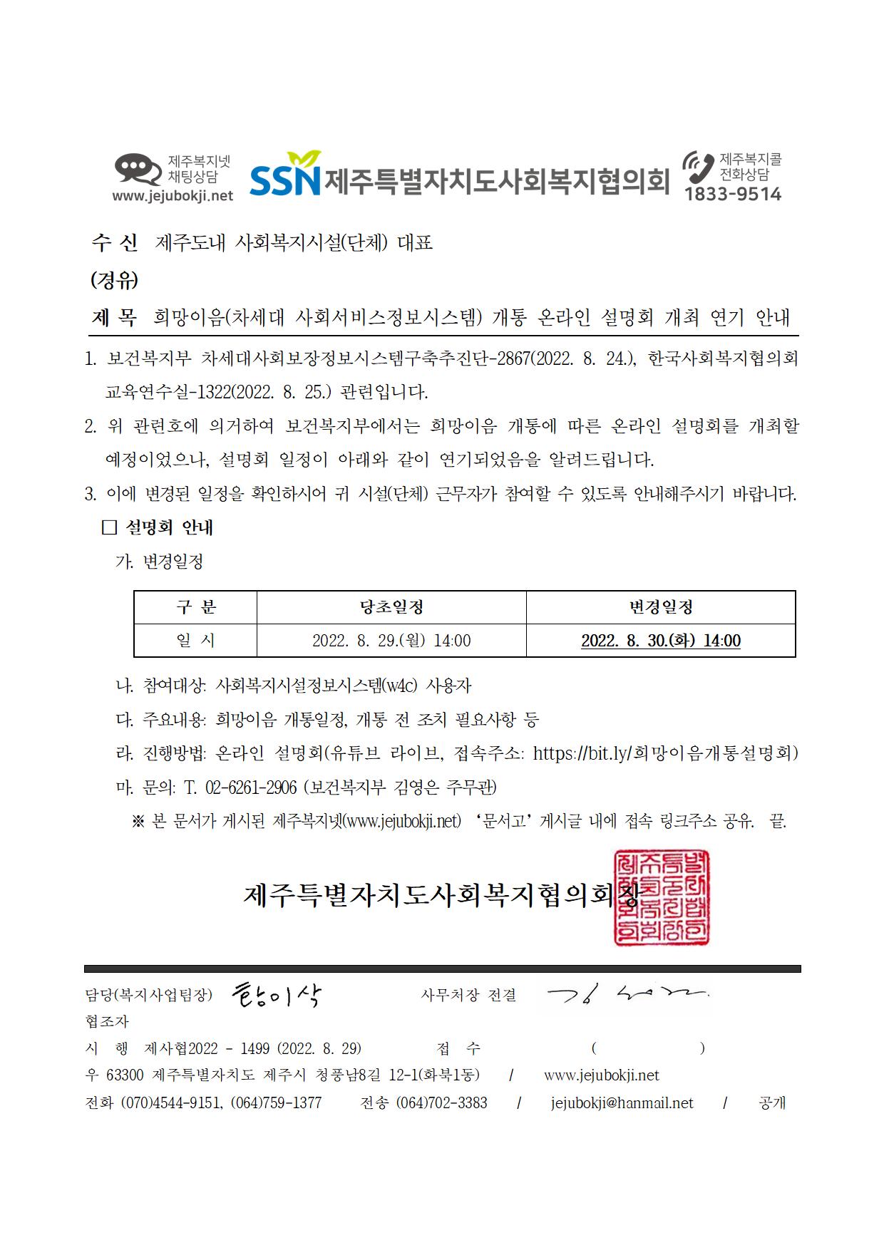 희망이음(차세대 사회서비스정보시스템) 개통 온라인 설명회 개최 연기 안내