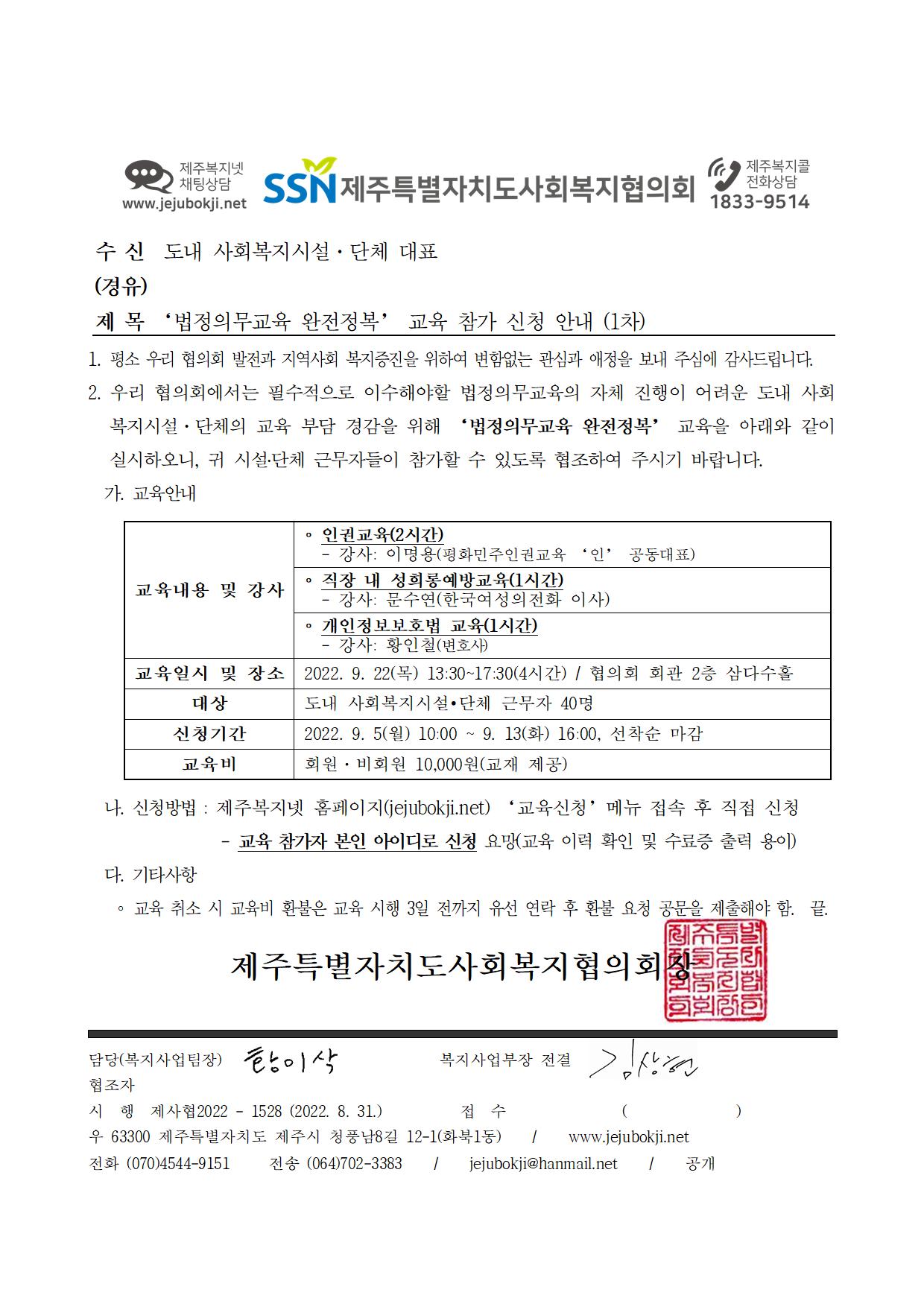 ‘법정의무교육 완전정복’ 교육 참가 신청 안내 (1차)