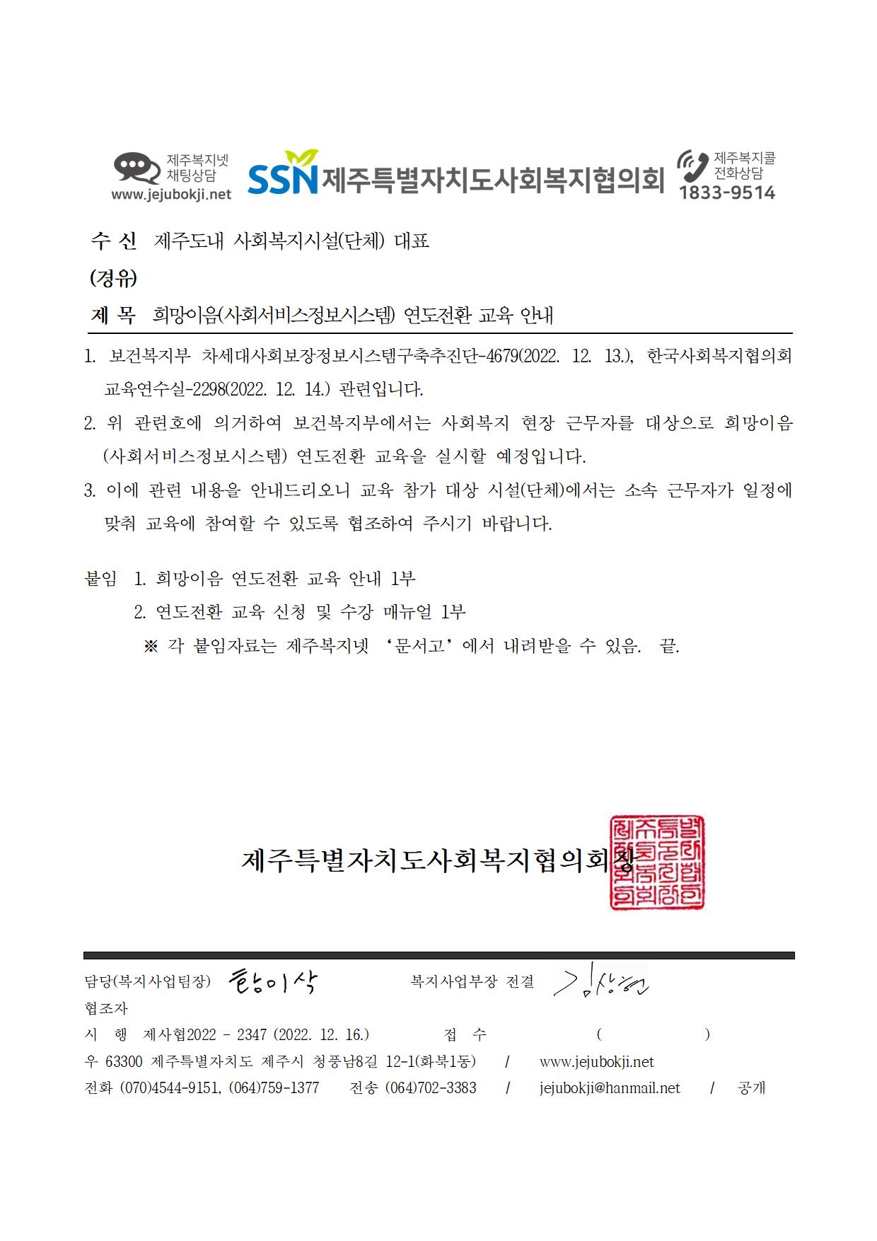 희망이음(사회서비스정보시스템) 연도전환 교육 안내