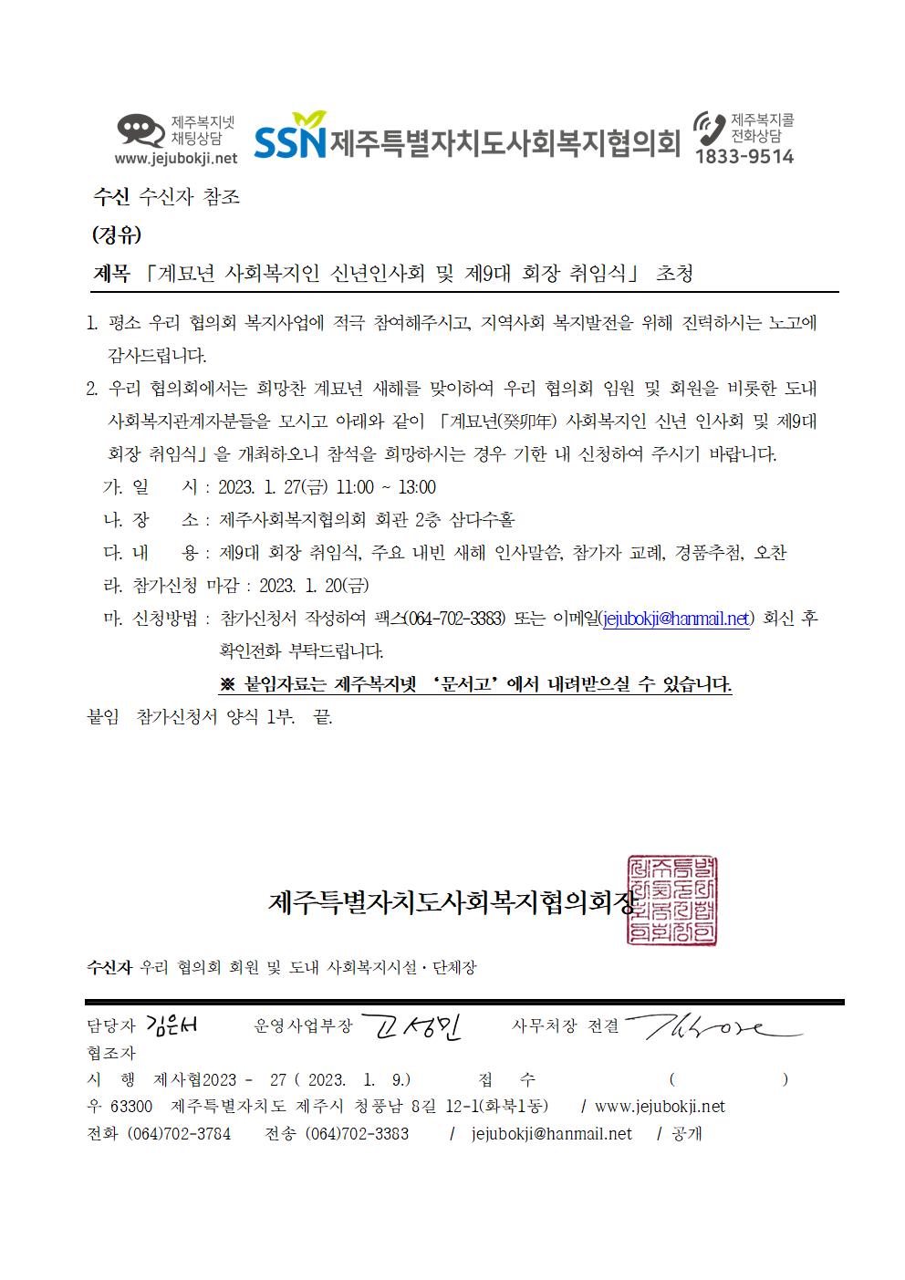 「계묘년 사회복지인 신년인사회 및 제9대 회장 취임식」 초청