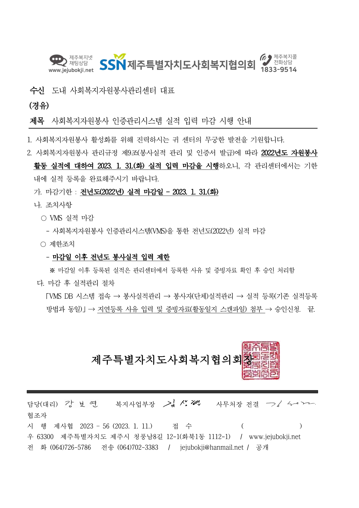 사회복지자원봉사 인증관리시스템 실적 입력 마감 시행 안내