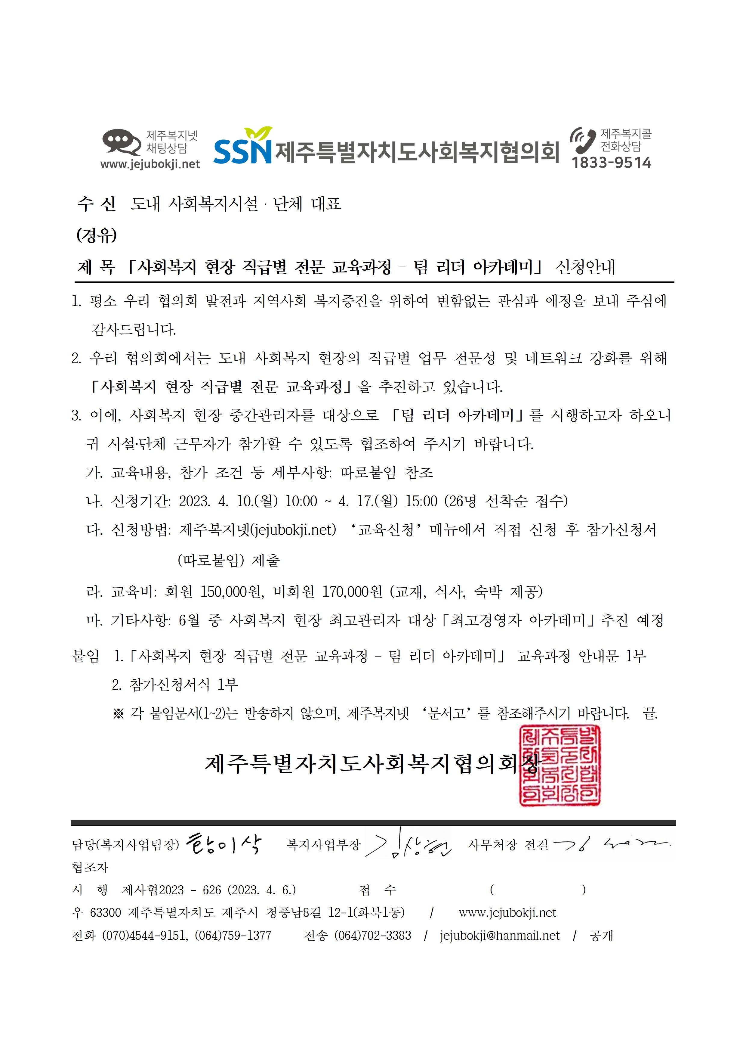 「사회복지 현장 직급별 전문 교육과정 – 팀 리더 아카데미」 신청안내
