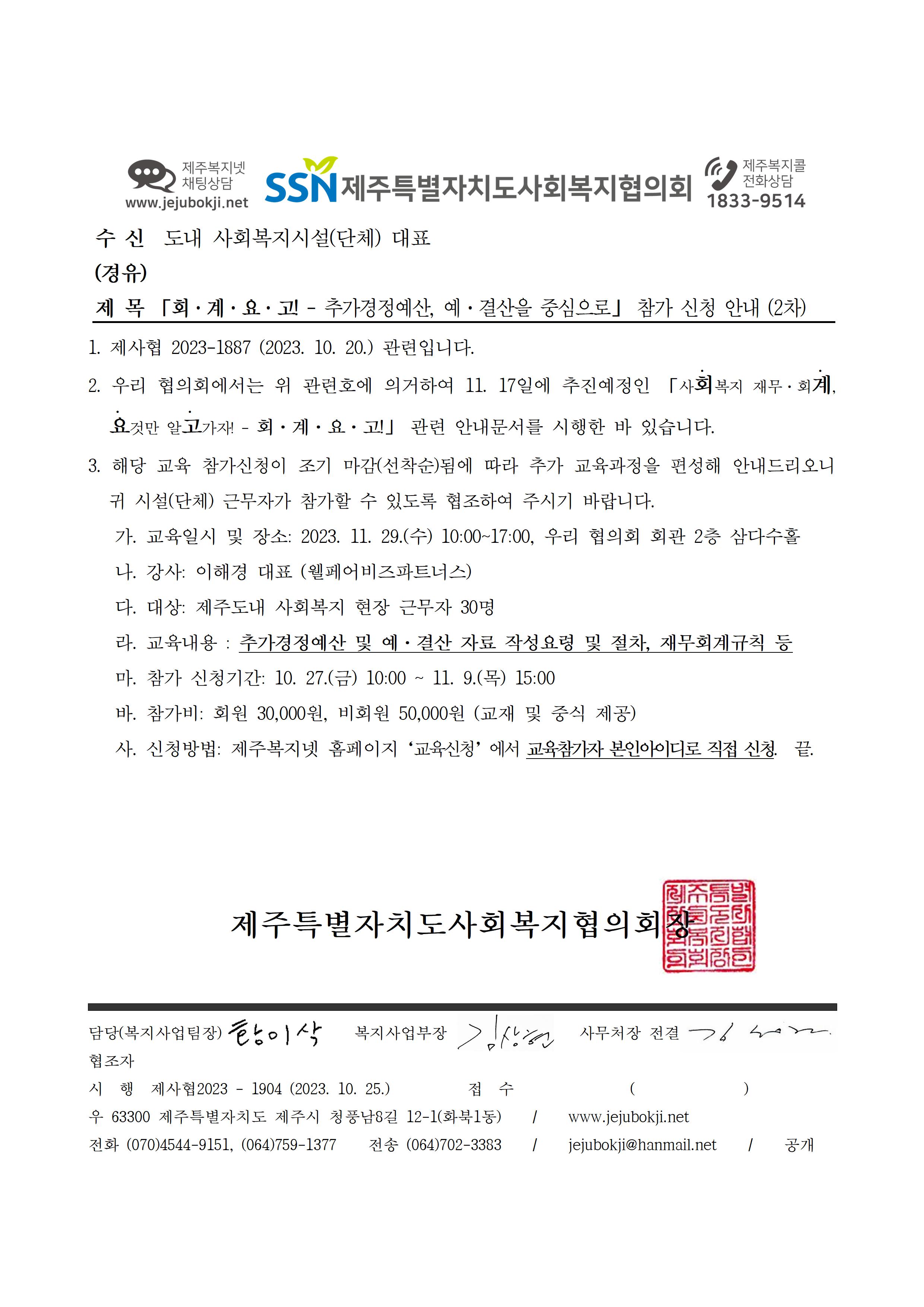 2차「회·계·요·고! - 추가경정예산, 예·결산을 중심으로」 참가 신청 안내