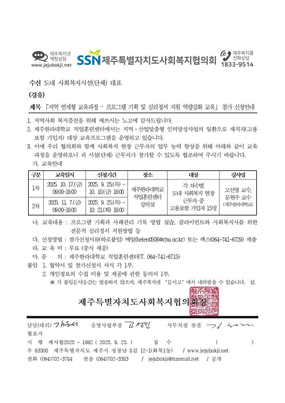 「지역 연계형 교육과정 - 프로그램 기획 및 심리정서 지원 역량강화 교육」 참가 신청안내