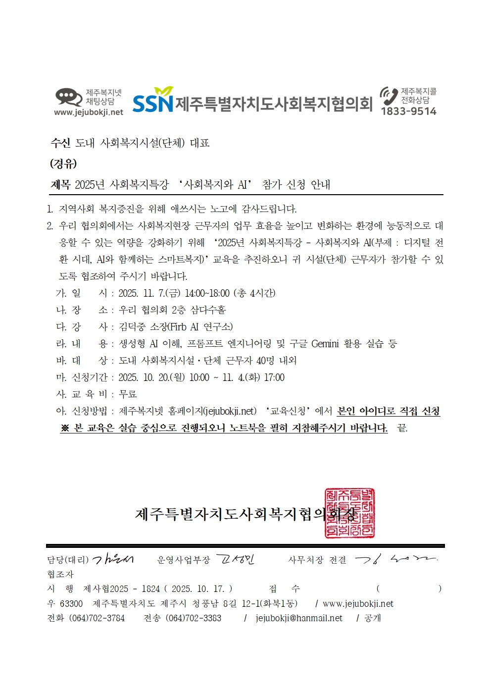 2025년 사회복지특강 '사회복지와 AI' 참가 신청 안내