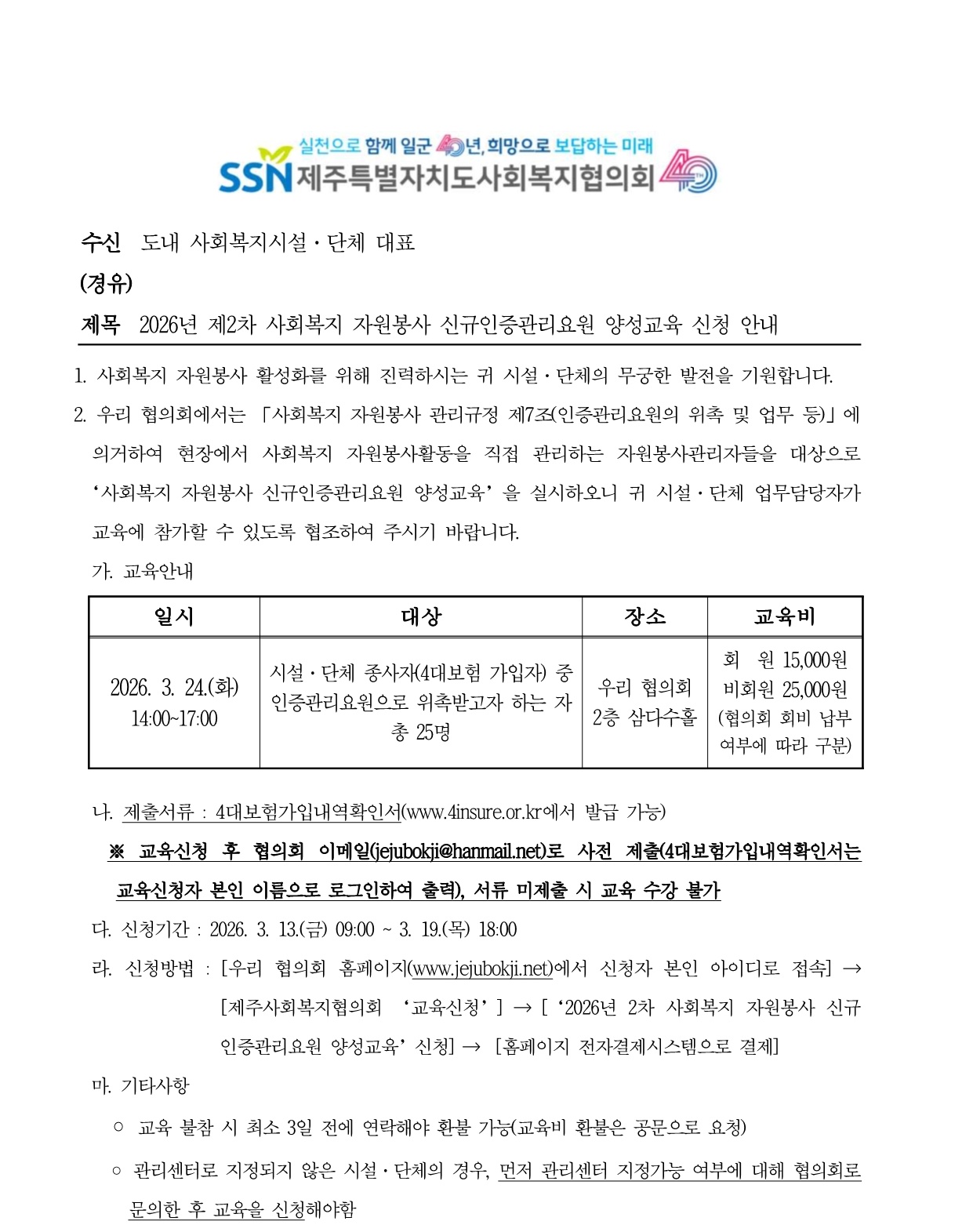 2026년 제2차 사회복지 자원봉사 신규인증관리요원 양성교육 신청 안내
