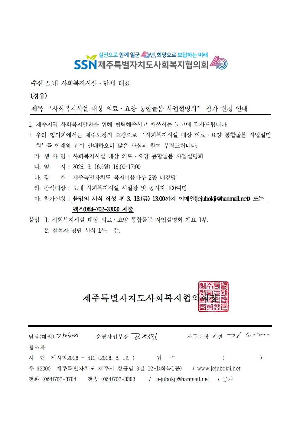 '사회복지시설 대상 의료·요양 통합돌봄 사업설명회' 참가 신청 안내